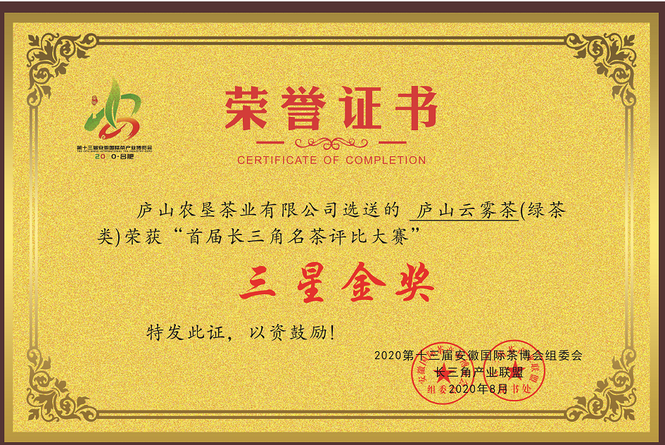 2020年第十三届 首届长三角评比大赛红茶、绿茶同时荣获三星金奖